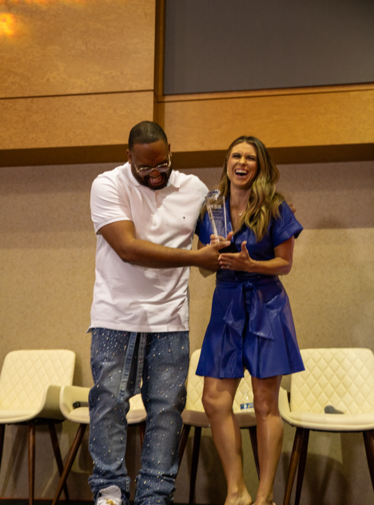 The program officially began with a high-energy live performance by Deaon Forever, setting the tone for an unforgettable night. Karen Vaughn, BSwift, and Jake Query welcomed the audience with heartfelt remarks, followed by a moving video tribute from Franciscan Health. The highlight of the evening was the panel discussion, Heart & Hustle in Indiana Sports, featuring Katie Douglas-Poe, Larra Overton, and Julie Roe Lach, who shared their inspiring journeys and insights into the impact of women in sports.