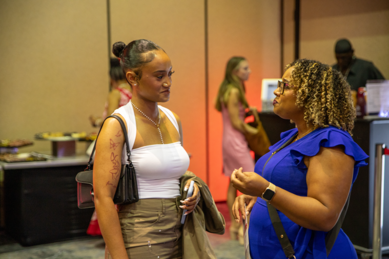 The evening kicked off with a vibrant red carpet arrival, complete with a step-and-repeat photo booth and a buzzing networking session. Guests mingled over charcuterie, cocktails, and a wellness activation by Franciscan Health, all while enjoying the upbeat ambiance set by DJ Kenny Kixx. The silent auction, featuring exclusive items like Colts tickets and luxury gift cards, added an exciting layer to the festivities.